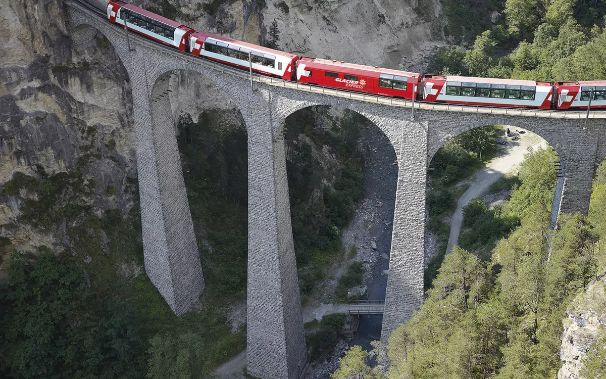 • Fahrt mit dem Glacier-Express (2. Klasse Panoramawagen) von Brig nach Chur