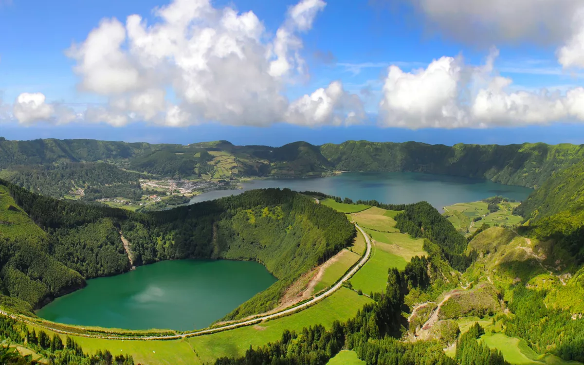 Im Westen von São Miguel erwarten uns die berühmten Vulkanseen von Sete Cidades – zweifellos eines der spektakulärsten Naturschauspiele der Azoren. Die beiden Seen, Lagoa Azul und Lagoa Verde, liegen eingebettet auf etwa 250 Meter Höhe in der mächtigen Caldeira. Obwohl nur eine schmale Bogenbrücke sie teilt, scheint das Wasser in zwei unterschiedlichen Farben zu leuchten: tiefes Blau und sattes Grün, was die magische Atmosphäre zusätzlich unterstreicht. Zahlreiche Legenden ranken sich um das mystische Dorf Sete Cidades, denen wir bei unserem Aufenthalt nachspüren werden. Ein besonderes Highlight der Route ist der Stopp am berühmten Aussichtspunkt Vista do Rei – von hier aus eröffnet sich ein unvergleichlicher Panoramablick über das gewaltige Kraterbecken mit seinen farbenfrohen Seen und der umgebenden Naturkulisse. Auf dem Rückweg nach Ponta Delgada besuchen wir eine traditionelle Ananas-Plantage. Hier erfahren wir anschaulich alles über die bemerkenswerten Entwicklungsstadien dieser exotischen Frucht – von der Anzucht im Gewächshaus bis zur Ernte. Zum Abschluss bietet sich die Gelegenheit, den hauseigenen, aromatisch-süßen Ananas-Likör zu verkosten.