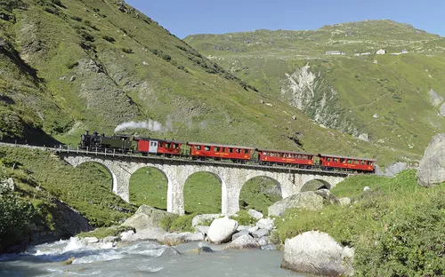 Mit einer Dampflok, die kürzlich ihren 100. Geburtstag feierte, klettern Sie in historischen Wagen von Gletsch über den Furkapass nach Realp. Das einstige Herzstück des Glacier-Express´ verbindet die Kulturräume Wallis und Uri zu einem einmaligen Erlebnis.
