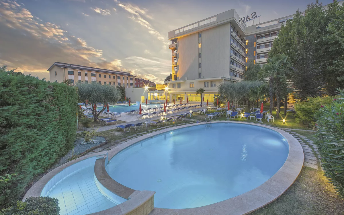 Mit einem 20.000 m großen Garten ist das 4-Sterne-Hotel Savoia Thermae & Spa eine entspannende Oase der Ruhe und trotzdem im Zentrum von Abano Terme. Die Zimmer bieten Bad oder Dusche/WC, Föhn, TV, WLAN, Bademantel, Badetuch, Minibar und Safe. Die Thermalhallen- und Freischwimmbäder sind miteinander verbunden und verfügen über Wasserfall und Unterwasserdüsen. Außerdem steht ein Spa-Bereich mit Sauna, Dampfbad und Kneipp-Parcours zur Verfügung.