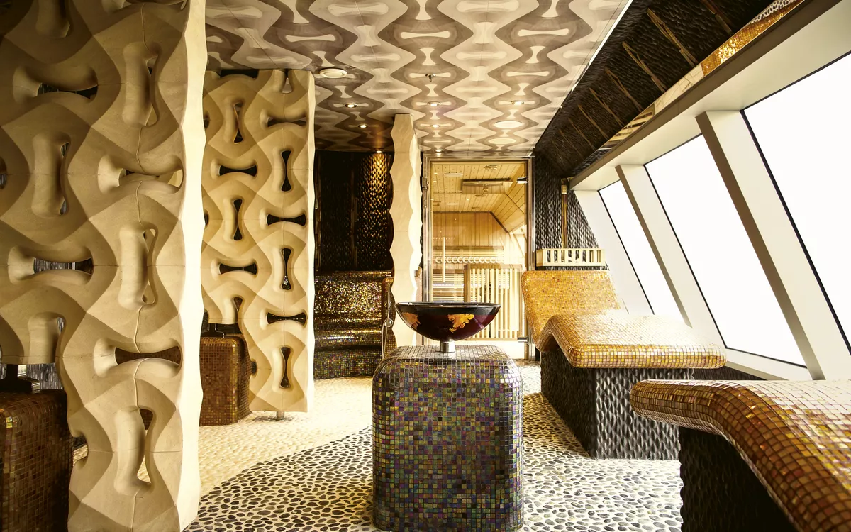 Bei einem Seetag entspannt man am Besten im Spa, oder in einem der Außenwhirlpools, und genießt dann ein gutes Glas Wein an der Weinbar.