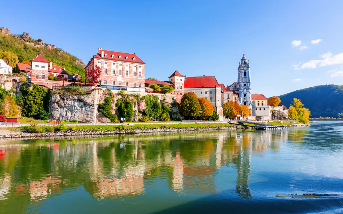 Der Vormittag steht ganz im Zeichen der Flusskreuzfahrt. Nehmen Sie Platz und lassen Sie den Blick über die Landschaft schweifen, denn heute kreuzt die MS Douce France durch eines der schönsten Flusstäler Europas – die Wachau. Jahrhunderte alte Weinberge, Aprikosengärten, zahlreiche Burgen und Klöster und atemberaubende Naturlandschaften säumen die Ufer der Donau. Nach dem Mittagessen erreichen Sie Dürnstein mit seinem weithin sichtbaren blau-weißen Kirchturm des Augustiner Stifts. Bei einer geführten Besichtigung lernen Sie dieses romantische Kleinod inmitten der Wachau kennen und tauchen ein in die Geschichte, die untrennbar mit dem englischen König Richard Löwenherz verbunden ist.