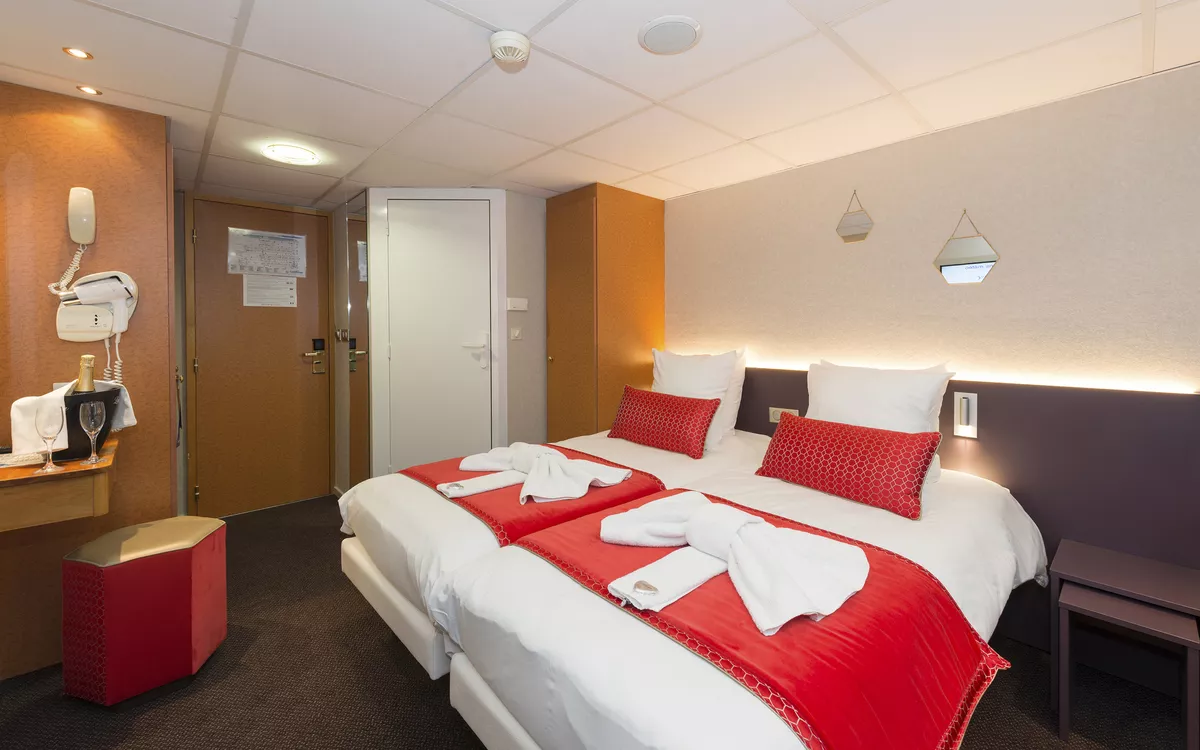 Sie sind Gast an Bord der MS „L‘Europe“, einem 4-Anker-Schiff der französischen Reederei Croisi Europe. Das Flusskreuzfahrtschiff ist 110 m lang, 11 m breit und verfügt über 90 Kabinen auf drei Decks (42 Ober-, 27 Mittel- und 21 Hauptdeck-Kabinen). Auf den weitläufigen Decks, die mit einem Lift verbunden sind, befinden sich die Rezeption, der elegant ausgestattete Salon mit Bar und das Restaurant, in dem die Mahlzeiten (Buffetfrühstück und am Tisch serviertes Mittag- und Abendessen) in einer Sitzung eingenommen werden. Alle individuell klimatisierbaren Kabinen sind Außenkabinen u. verfügen über zwei untere Betten (getrennt oder als französisches Bett), Dusche/WC, Föhn, Fernseher, Safe und großes Fenster im Oberdeck (zur Hälfte zu öffnen), Oberlicht im Mitteldeck (zur Hälfte aufschiebbar) und Oberlicht im Hauptdeck (nicht zu öffnen). Auf dem großen Sonnendeck stehen Liegestühle zur Verfügung. Bordsprache: deutsch und französisch, Reisekleidung: sportlich-leger; Stromspannung: 220 V.