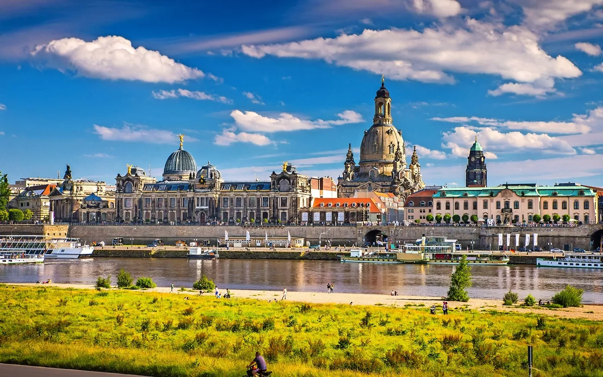 Elegant spiegelt sich die berühmte Silhouette in der glitzernden Elbe. Auf kurzem Weg geht's vom ruhigen Ufer mit seinen grünen Augen zu weltberühmten Sehenswürdigkeiten wie z. B. der Frauenkirche, Semperoper und dem Zwinger und Residenzschloss.