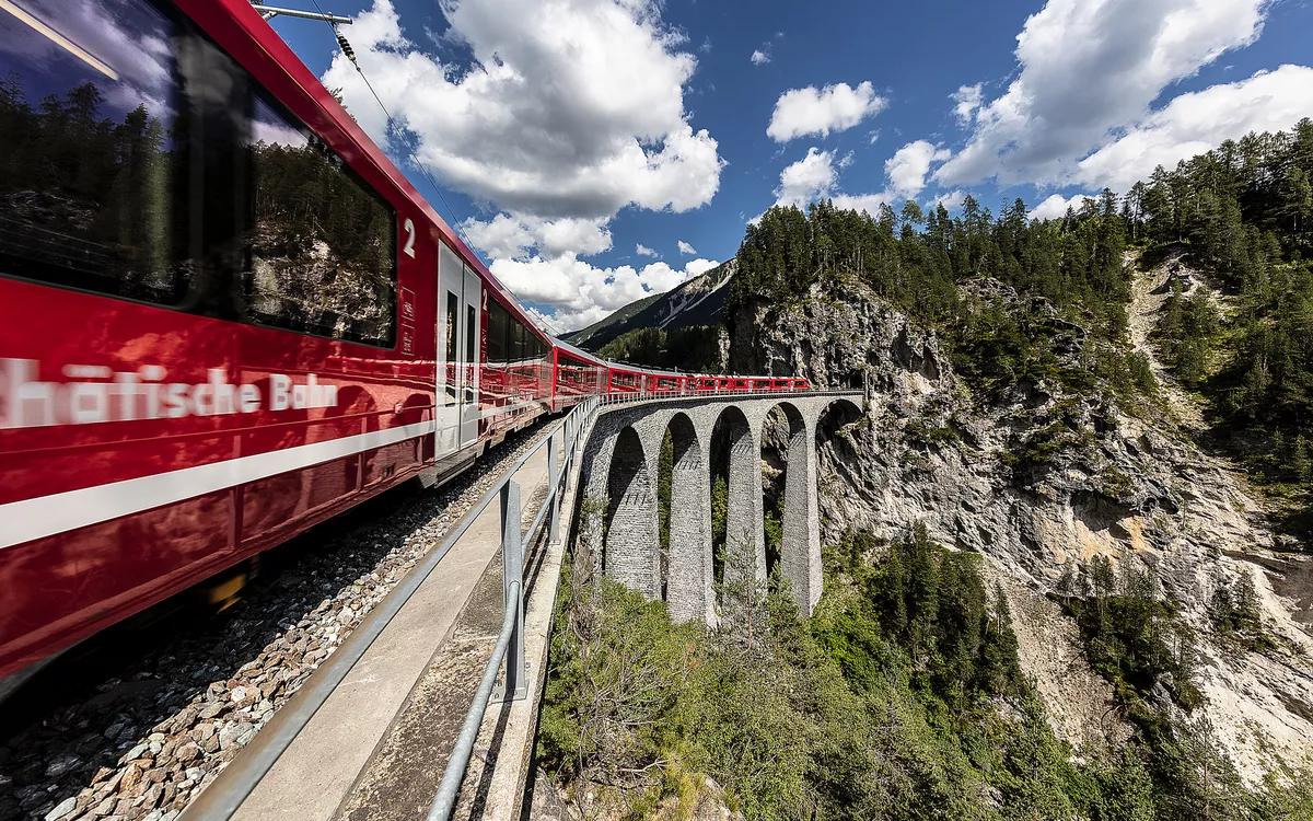 Genießen Sie die Fahrt im Panoramawagen des „langsamsten Schnellzugs der Welt“, dem legendären Schweizer Glacier-Express, während hoch aufragende Viertausender, ewiges Eis, Gletscher, rauschende Bäche und saftig grüne Wiesen an Ihnen vorbeiziehen.