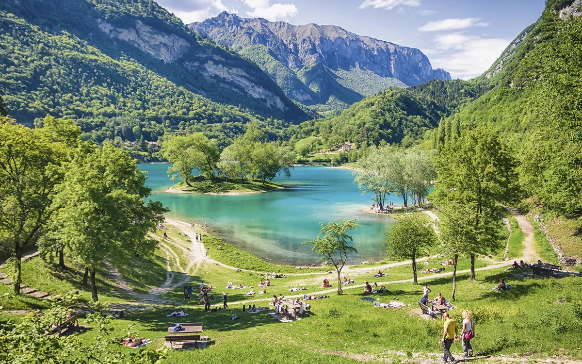 Mit dem Bus geht es zum Passo Ballino, von wo aus Sie auf alten Maultierwegen zum Bergsee Lago di Tenno wandern. Vom See führt Sie der Weg nach Canale - einer der 100 schönsten Orte Italiens. Am Tennosee genießen Sie einen herzhaften Imbiss mit typischen Produkten, bevor es zur Burg von Tenno geht. Sie können zu Fuß oder mit dem Reisebus zurückkehren.