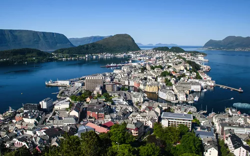 Bestaunen Sie die wunderschöne Jugendstil-Architektur der Stadt Ålesund und den Atlanterhavsparken, eines der größten Salzwasseraquarien Nordeuropas. Eine Wanderung zum Gipfel des nahe gelegenen Berges Aksla belohnt mit einem herrlichen Blick über die Stadt und die anderen Inseln.
