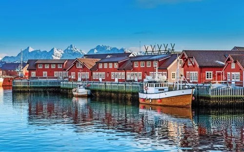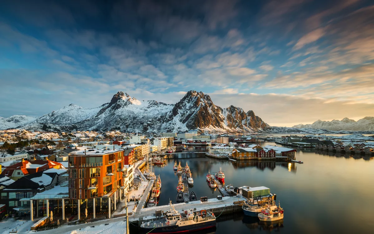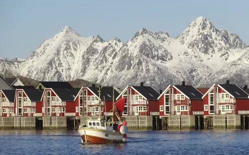 Die mächtigen Gipfel der Lofoten, die aus dem Meer emporragen, bieten einen unvergesslichen Anblick. Sie fahren nach Svolvær, der größten Stadt auf den Lofoten. Es lohnt sich, entlang der Uferpromenade zu schlendern, um Geschäfte und Kunstgalerien zu entdecken. Anschließend machen Sie einen Abstecher nach Stokmarknes. (