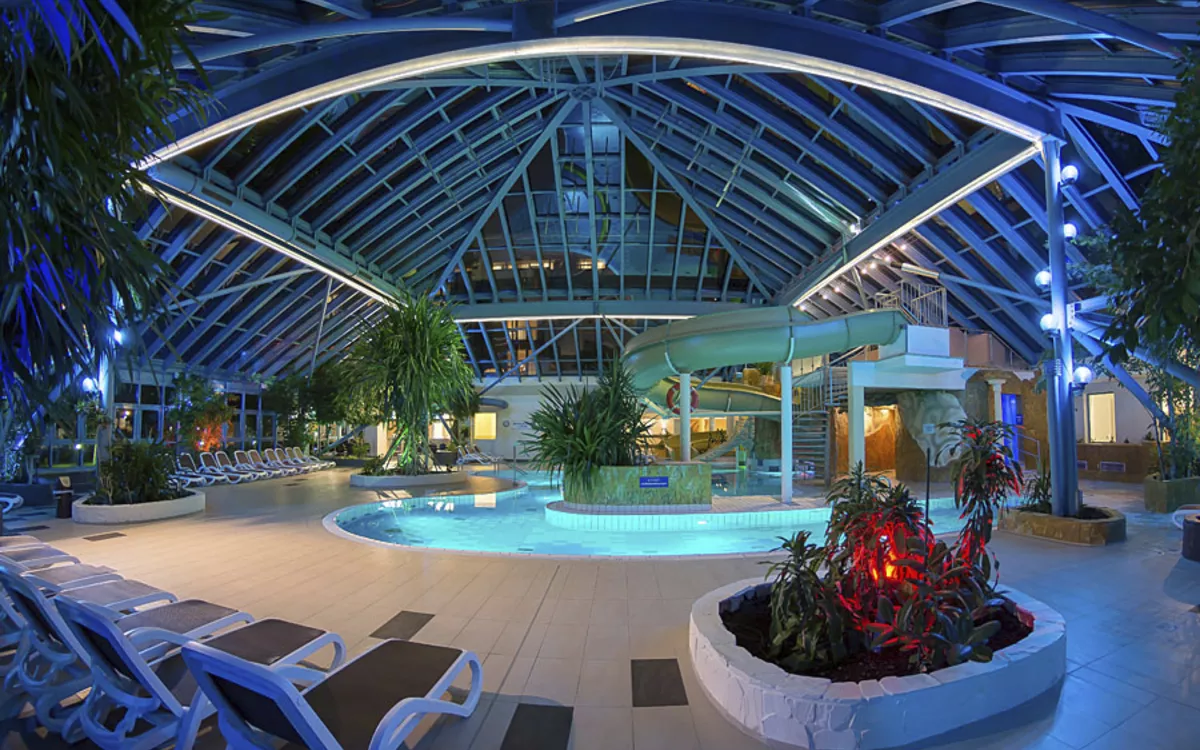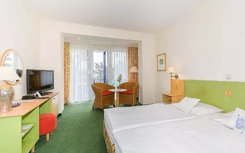 Das 3-Sterne-superior-Hotel IFA Rügen Hotel & Ferienpark heißt Sie im wohl bekanntesten Ostseebad der Insel Rügen willkommen – in Binz. Das Traditionsbad der Insel liegt an einer acht Kilometer langen Bucht mit traumhaftem weißen Sandstrand. Die verkehrsfreie Promenade führt vom historischen Ortskern mit seiner Seebrücke und den eindrucksvollen Bauten im Stil der Bäderarchitektur direkt zum IFA Rügen Hotel & Ferienpark. Die komfortablen Zimmer sind mit Dusche/WC, Fön, Telefon, 32" Flat - TV, Schreibtisch, kleiner Sitzgarnitur und optionalem WLAN-Zugang ausgestattet. Genießen Sie morgens ein Schlemmer-Frühstücksbuffet und abends ein reichhaltiges Dinnerbuffet. Das 1.500 m² große Erlebnisbad hält unter tropischen Pflanzen eine 46 Meter lange Wasserrutsche, Erlebnisgrotten, Wasserfälle und für die Kleinen ein Kinderplanschbecken mit Spritzfiguren bereit.