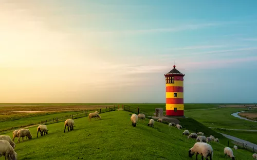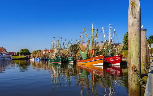 Wie eine Perlenkette liegen sie vor der ostfriesischen Küste – die ostfriesischen Inseln. Erleben Sie Borkum und Langeoog, begeben Sie sich auf dem Ems-Jade-Kanal auf eine Schifffahrt und freuen Sie sich auf die Fischerhäfen Krummhörn und Greetsiel.