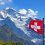 Schweizer Flagge vor dem Berg Jungfrau in der Schweiz