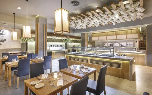 • Hauptrestaurant „Mogambo“: Küche: international, vegetarische Gerichte, Buffet, Showcooking, mit Terrasse