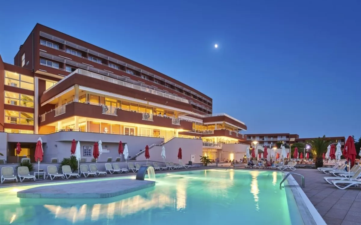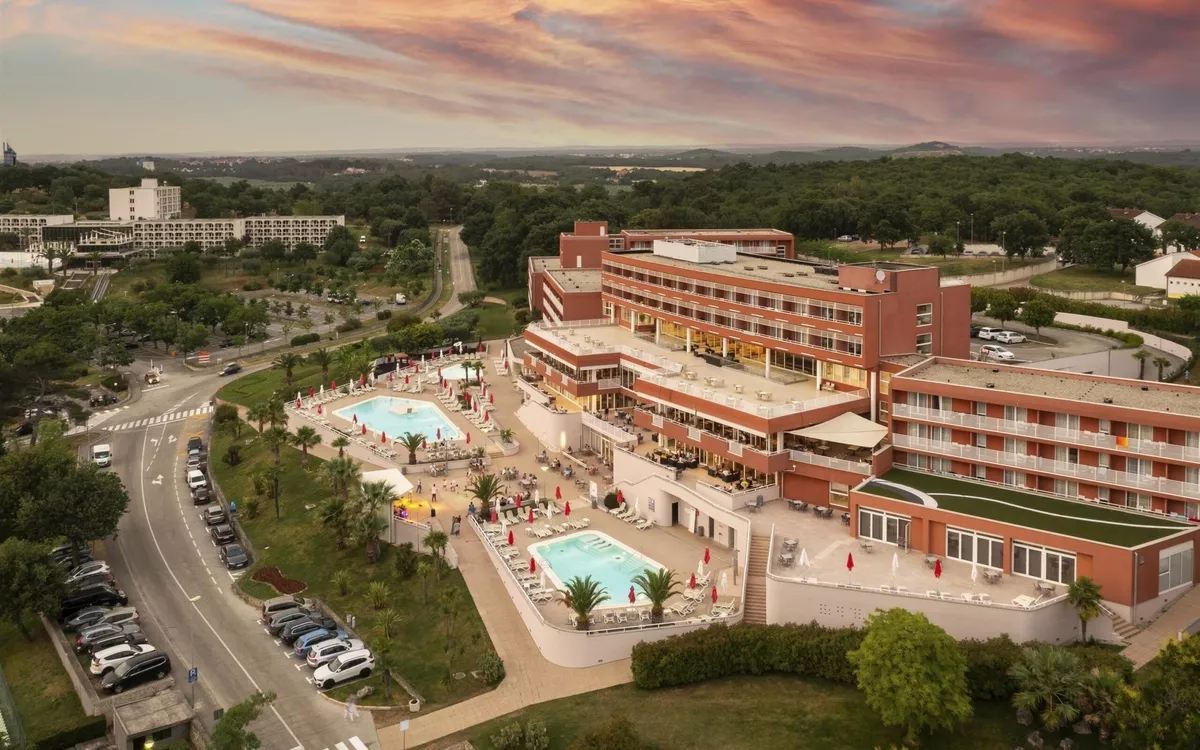 Das 4-Sterne-Hotel Plava Lagina Albatros liegt ca. 5 km südlich von Porec in der Ferienanlage Zelena Laguna auf einer Anhöhe ca. 150 m vom Kies-Felsstrand entfernt. Das vollklimatisierte Hotel besteht aus mehreren Trakten, die mit Lift, Bar und Souvenirladen ausgestattet sind. Das Frühstück und das Abendessen erfolgen in Buffetform. Die Zimmer sind mit Bad oder Dusche/WC, Föhn, Balkon, Teppichboden, Minibar, Klimaanlage, TV und Safe ausgestattet.