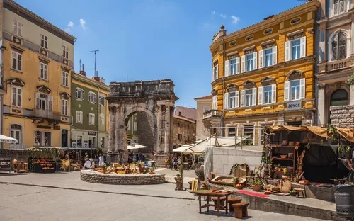 Beeindruckend weit zieht sich der Meeresarm des Lim-Fjords ins Landesinnere Istriens hinein. Am Panorama-Punkt können Sie sich ein Bild davon machen. Dann erleben Sie bei einem geführten Spaziegang die römische Hinterlassenschaften in Pula, der ältesten Stadt Istriens: mächtig ist das Amphitheater erhalten, imposant steht der Tempel für Roma und Augustus am Forum in der lebendigen Altstadt. Am Nachmittag besuchen Sie das reizende, von kleinen Gassen durchzogene Küsten-Städtchen Rovinj, das von der weit sichtbaren, auf eine Hügel stehenden Sv. Eufemija-Kirche überragt wird.