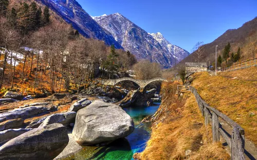 Das Verzascatal ist wegen seiner Schönheit, Natürlichkeit und den vielen Entdeckungsmöglichkeiten sehr beliebt. Es gibt wohl nirgendwo auf der Welt einen spektakuläreren Taleingang, bestehend aus der 220 Meter hohen Staumauer, als jenen diesen Tals, der durch den Sprung im James Bond-Film „Golden Eye“ weltbekannt wurde. In Sonogno sehen Sie das letzte Dorf des Verzascatals, das Sie mit seinem Charme und der Ruhe verzaubern wird: die mit Blumen geschmückten Häuser, gepflasterten Gassen und der charakteristische Dorfplatz, auf dem sich die Leute zu einem Schwatz treffen. Das Haus der Wolle (Casa della lana) und das Museum zeugen von Geschichte und Traditionen, die teilweise heute noch gelebt werden. Das meist fotografierte Objekt des Tals ist zweifellos die Bogenbrücke „Ponte dei Salti“ in Lavertezzo. Auf der Rückfahrt haben Sie in Canobbio die Möglichkeit zu einem Spaziergang am Lago Maggiore.