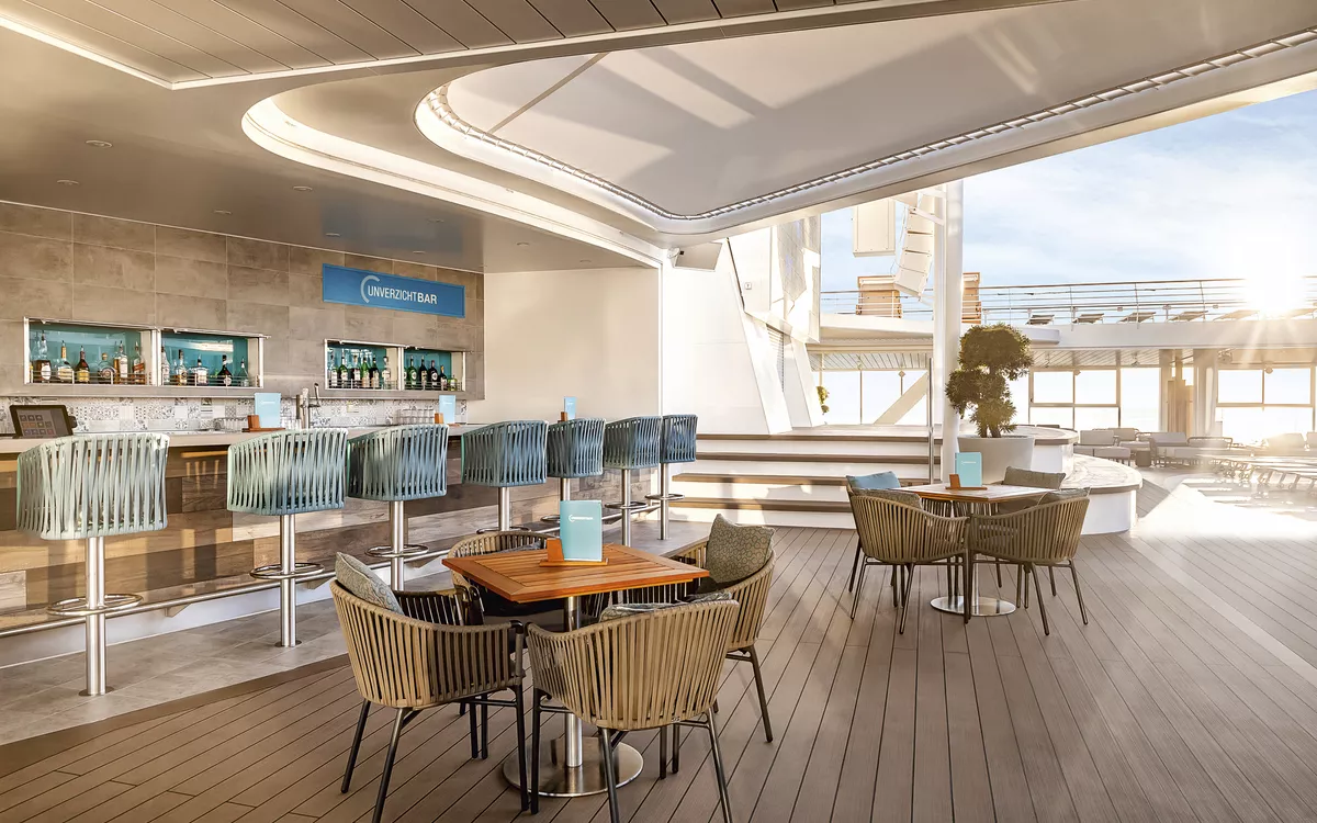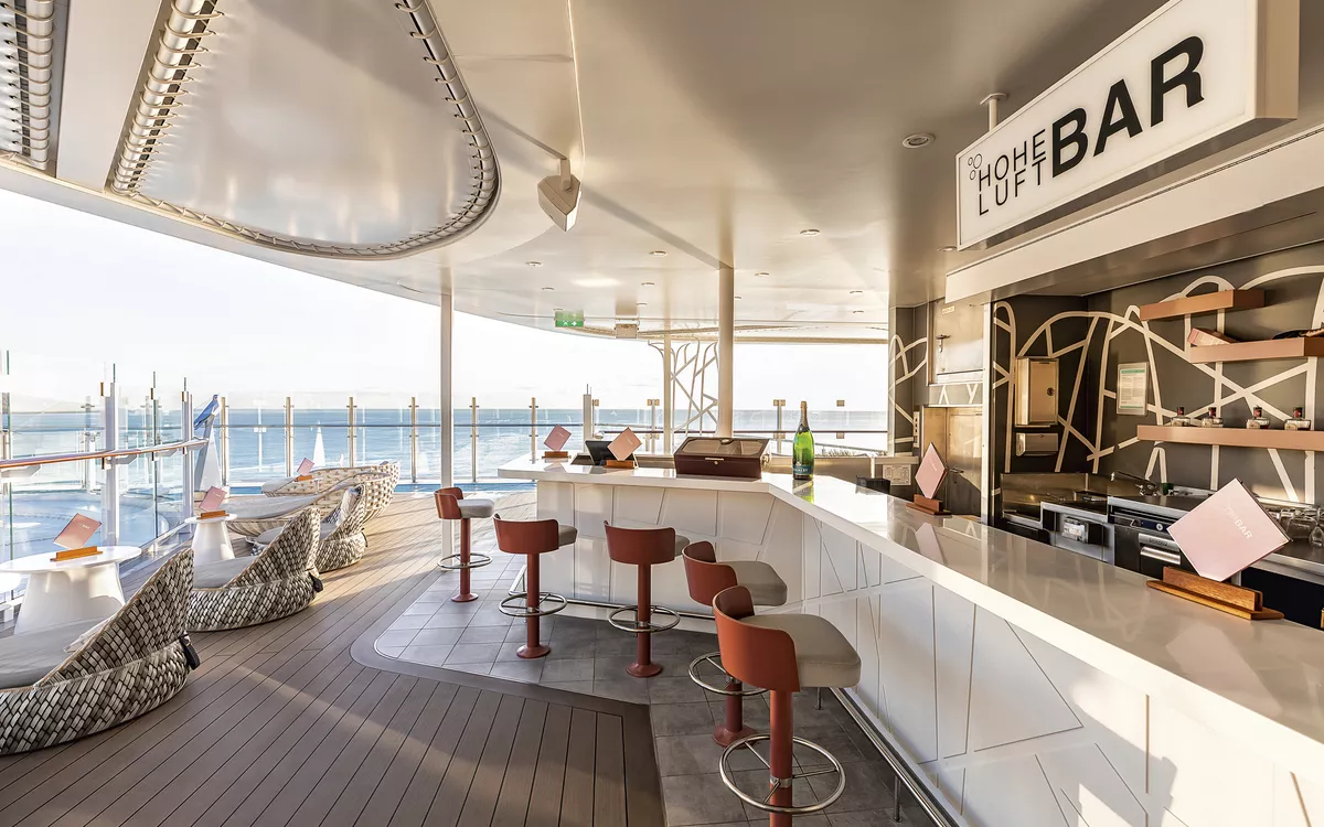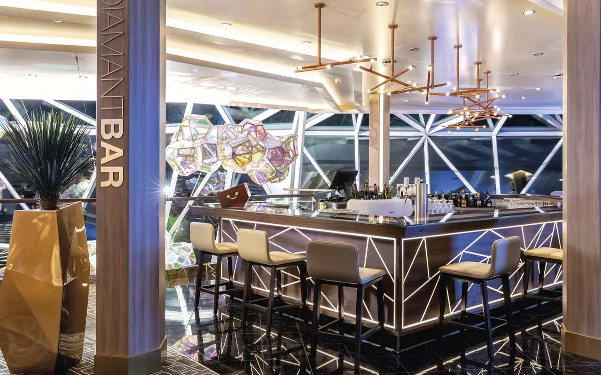 Schön entspannt die Füße hochlegen und einen Cappuccino genießen, gemeinsam mit einem Frischgezapften anstoßen, über die vielfältige Cocktailkarte staunen oder mit Blick aufs Meer einen kleinen Aperitif einnehmen – auf der Mein Schiff 1 erwarten Sie zahlreiche Bars und Lounges, ganz nach Anlass und Geschmack.