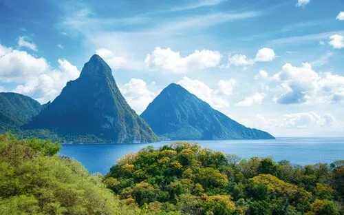 St. Lucia ist bekannt für ihre üppige Landschaft, bestehend aus tropischen Regenwäldern, vulkanischen Bergen, atemberaubenden Küstenlinien und traumhaften Sandstränden. Das markanteste geologische Merkmal von St. Lucia ist das „Pitons“ genannte Doppelbergmassiv, bestehend aus den beiden majestätischen Gipfeln Gros Piton und Petit Piton.