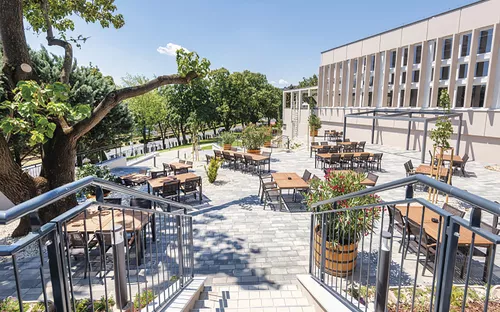 Das 4-Sterne-Hotel Hunguest BÁL Resort liegt in Balatonalmádi, inmitten eines wunderschönen Naturparks von 2 Hektar, nur 200 m vom Ufer des Balatons entfernt. Die Inneneinrichtung wurde 2022 komplett renoviert und die Skyrose Bar im obersten Stock bietet einen überwältigenden Ausblick über den See. Das Hotelrestaurant verwöhnt mit abwechslungsreichen Frühstücks- und Abendbuffets. In der hoteleigenen Wellnessabteilung finden Sie einen Innenpool mit 25 m, einen Jacuzzi, ein Kneippbecken und verschiedene Saunen (finnische Sauna, Infrarotsauna und Dampfbad) sowie ein Tauchbecken mit kaltem Wasser. Die Zimmer sind mit Dusche/WC, Föhn, Leih-Bademantel, Klimaanlage, WLAN, TV und Safe ausgestattet. Ein kurzer Spaziergang von kaum fünf Minuten bringt Sie zum hoteleigenen Strand.
