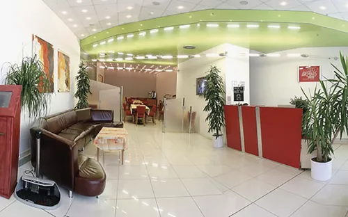 Das 4-Sterne-Hotel Olympik Artemis (Landeskategorie) liegt unweit des Stadtzentrums an der U-Bahnlinie B (Station Invalidovna), ca. zehn Fahrtminuten vom Altstadtzentrum Prags entfernt. Es bietet Unterkunft in modern ausgestatteten Zimmern, die mit Satelliten-TV, Radio, Klimaanlage, Safe, Minibar, Internetanschluss und Bad mit Badewanne und WC ausgestattet sind. Das Frühstücksbuffet wird im Hotelcafé serviert, das Abendessen im Hotel-Restaurant.