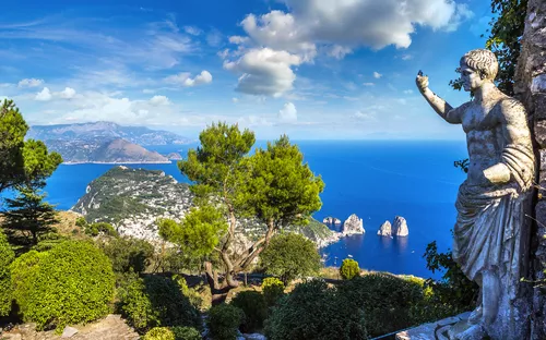 Am Morgen haben Sie die Möglichkeit, mit dem Boot von Sorrent aus zur Insel Capri überzusetzen. Bei einer halbtägigen Wanderung bieten sich Ihnen immer wieder herrliche Ausblicke auf die Insel und das Meer. Bei Ihrer Wanderung geht es von Capri-Stadt hinauf zur Villa Jovis und zum Arco Naturale, mit einem Abstecher zur Matermania-Grotte. Der Nachmittag steht Ihnen für die Besichtigung von Capri bei einer Führung mit Minibussen zur Verfügung. Außerdem sehen Sie den Faraglioni-Felsen, das Wahrzeichen Capris, und die Piazetta mit ihren Cafés. Mit dem Schiff geht’s am Nachmittag zurück.