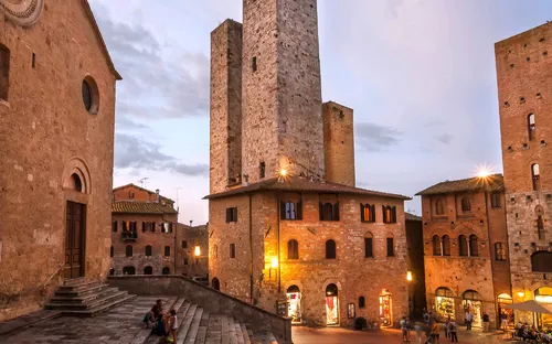 Ganztägige Toskana-Rundfahrt über Pontedera, San Miniato, Castelfiorentino und Certaldo nach Siena, eine der schönsten Städte der Toskana. Bei einer Führung sehen Sie u. a. den Dom und den weltberühmten Campo. Im Anschluss daran setzen Sie Ihre Fahrt nach San Gimignano fort. Zu Fuß geht es durch das Rothenburg der Toskana. Weiterfahrt durch die landschaftlich einzigartige Balze nach Tirrenia.