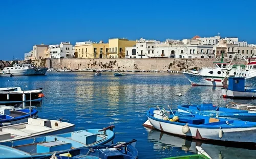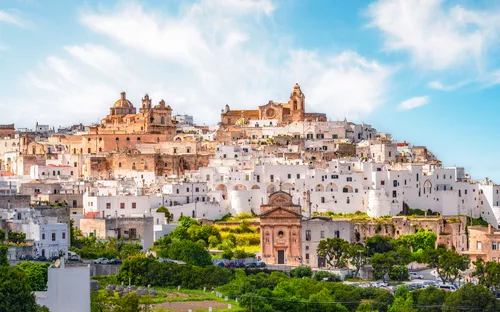 In Lecce spazieren Sie bei einer Führung durch die vor Barocken Fassaden strotzenden Straßen und besuchen im Anschluss eine Tenuta zur Weinverkostung. Direkt neben dem Flughafen Brindisi findet sich ein großartiges Beispiel apulisch-romanischer Kirchenarchitektur; die Kirche Santa Maria del Casale ist reich mit Fresken ausgestattet. Von fern erkennt man jetzt schon die weiße Stadt Ostuni mit ihren kalkgetünchten Häusern, die Sie bei einem Spaziergang erkunden. Ihr Hotel liegt für die nächsten Tage in Polignano a Mare.