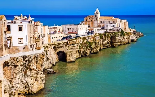 Die Krone Apuliens ist Castel del Monte auf der Höhe von Andria. Sie besuchen eines der be-deutendsten Bauwerke mittelalterlicher Prä-gung: es wurde vom Staufer-Kaiser Friedrich II errichtet. Mit seiner einzigartigen achteckigen Form zieht es Besucher aus aller Welt an. Schnell werden auch Sie sich von der außergewöhnli-chen Architektur und den zahlreichen Symbo-len des Castels inspirieren lassen. Dann führt Sie die Route auf den Gargano in den Wallfahrtsort Monte Sant‘ Angelo, eine der wichtigsten Stationen der ersten Jerusalem-Pilger im Mittel-alter. Sie nächtigen in Vieste bei den berühmten Kreidefelsen. 4-Sterne-Hotel