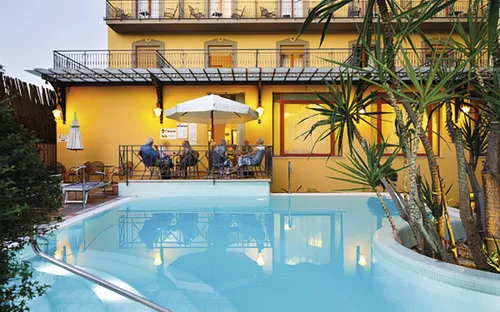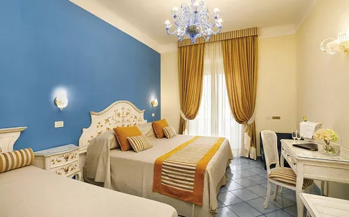 Das 4-Sterne-Hotel Zi´Teresa (Landeskategorie) befindet sich im über Steilklippen gelegenen Städtchen Sorrent (ca. 800 m zur zentralen Piazza Tasso). Von der Terrasse mit Außenpool aus haben Sie einen atemberaubenden Blick über die Landschaft. Die Zimmer sind mit Bad oder Dusche/WC, Klimaanlage, Sat-TV, Föhn und Safe ausgestattet.