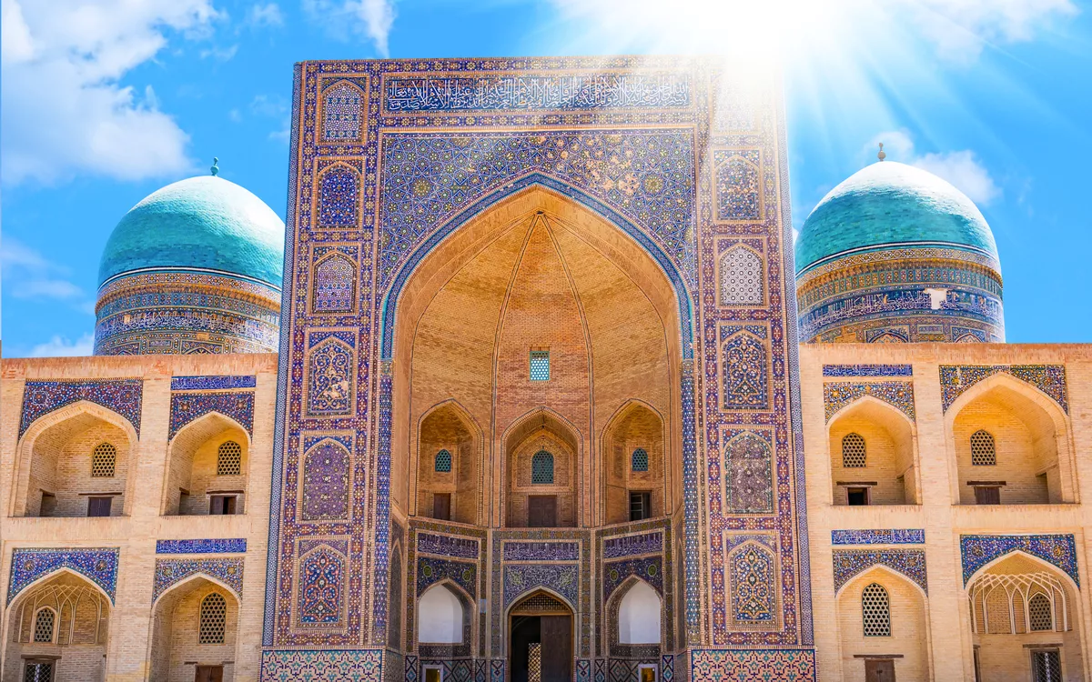 Nach dem Frühstück fahren Sie mit Ihrem Reisebus nach Buchara, einer Stadt wie ein lebendiges Museum. Besonders die Kuppelgebäude, die sogenannten Tak und Tim, prägen das Bild. Sie besuchen das außerhalb der Altstadt gelegene Mausoleum der Samaniden, das früheste bekannte Grabmal einer Persönlichkeit der islamischen Welt. Den Abend lassen Sie bei usbekischen Spezialitäten und klassischer Musik in der Altstadt ausklingen.