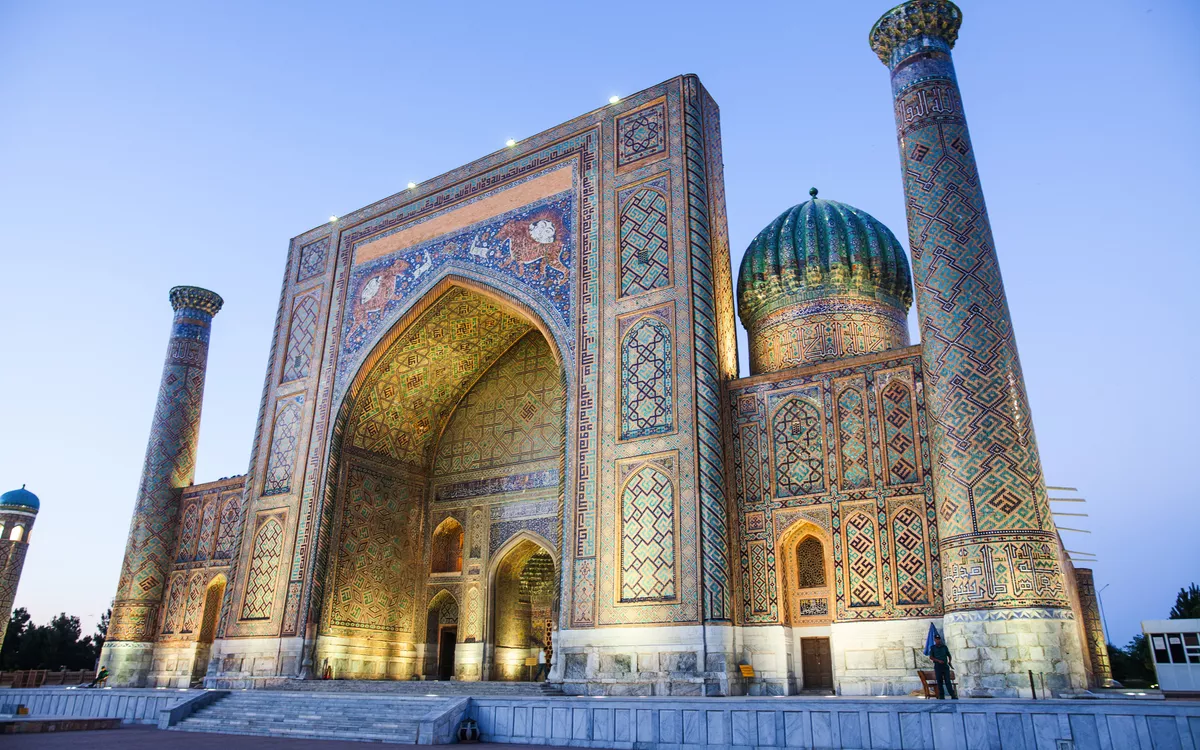 Ihr heutiger Tag entführt Sie nach Shah-e Sende, einem herrlichen Ensemble verschiedenster Mausoleen timuridischer Adliger, und besuchen anschließend die Moschee von Bibi Khanum. Ein kulinarischer Streifzug führt Sie über den farbenfrohen Basar, bevor Sie den zentralen Punkt der Oasenstadt besuchen: den Registan-Platz mit seinen drei rechtwinklig einander zugeordneten und kunstvoll verzierten Medresen. Der Mongolenherrscher Timur errichtete inmitten der Stadt ein Handels- und Handwerkszentrum, wie es sich für einen Knotenpunkt zwischen Orient und Okzident am Rand der großen Seidenstraße gehörte. Timurs palastartiges Mausoleum Gur-e Amir wird Sie sehr beeindrucken.  Abends kosten wir die erlesenen Tropfen Usbekistans während einer Weinprobe und kochen mit einer usbekischen Familie in einem Privathaus ein traditionelles Plov-Essen aus Fleisch, Gemüse und Reis.