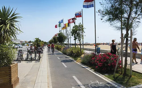 Das 4-Sterne-Hotel San Michele befindet sich im Zentrum von Bibione, nur wenige Meter vom Strand entfernt. Im großen, lichtdurchfluteten Speisesaal des Restaurants erwarten Sie authentische Gerichte sowie mediterrane Spezialitäten. Die Zimmer sind ist mit Bad oder Dusche/WC, Föhn, Klimaanlage/Heizung, LCD-Fernseher, Minibar, WLAN-Anschluss, Safe, Terrasse und Strandtüchern ausgestattet. Das ganzjährig beheizte Schwimmbad lädt nach einem anstrengenden Radtag ebenso zur Erholung ein wie Whirlpool, Biosauna und Dampfbad. Die 9 km lange Strandpromenade verläuft direkt vor dem Hotel.