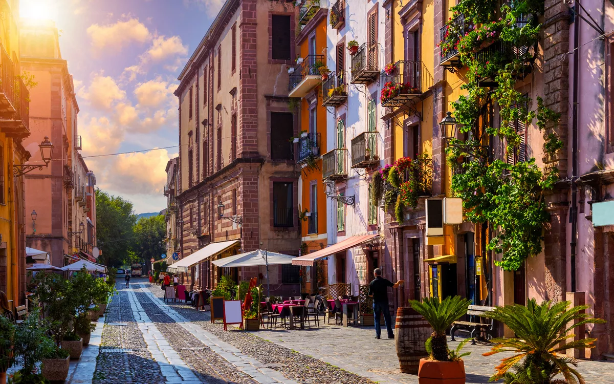 Im Westen Sardiniens liegen gigantische Klippen, feine Sandstrände und idyllische Altstädte Tür an Tür. Das spanisch geprägte Alghero, die Felsen von Capo Caccia, das bunte Bosa und die Halbinsel Sinis.