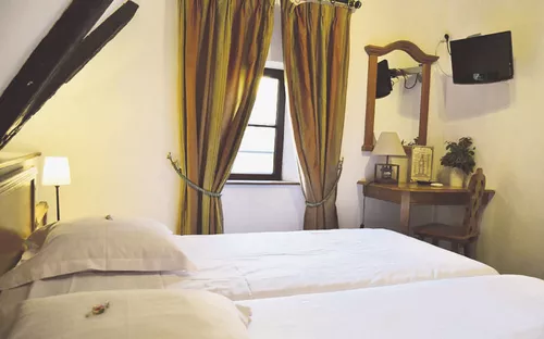 Das romantische 3-Sterne-Hotel St. Nicolas mit guten Bewertungen bei Booking.com (8.4) liegt mitten im Zentrum von Riquewihr, dem reizvollsten der kleinen Winzerorte im Elsass. Das Hotel ist eines der ältesten Fachwerkhäuser des Ortes und im typisch elsässischen Stil gehalten. Die Zimmer sind mit Bad oder Dusche/WC und Flachbild-TV ausgestattet. Im Restaurant Manala wird typisch elsässische Küche serviert. (ca. 5 Minuten Gehweg zum Hotel; Gepäckdienst mit Shuttlebus).