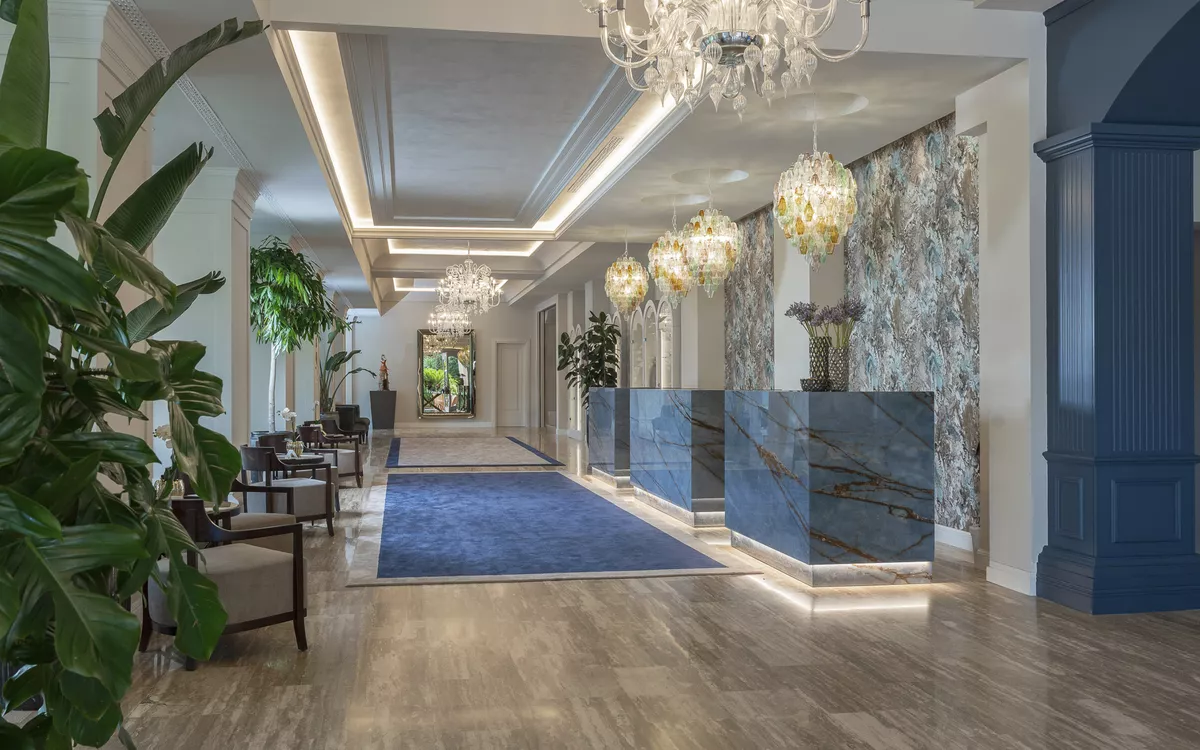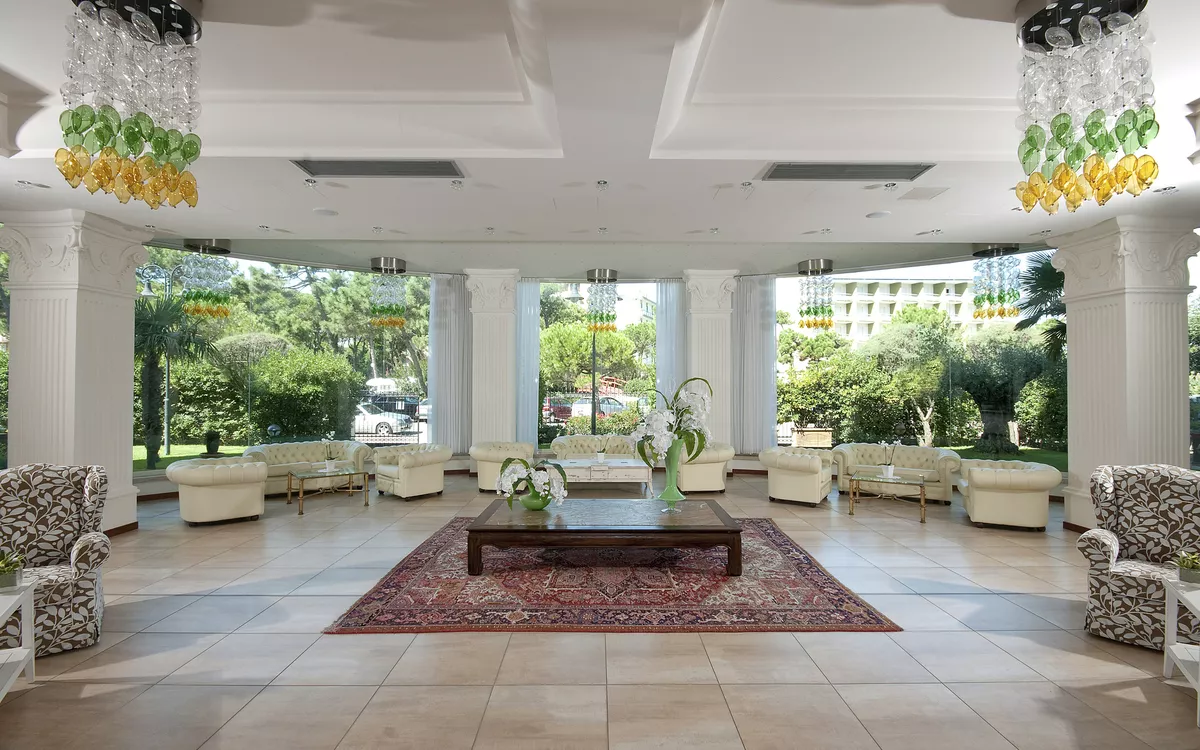 renoviertes, luxuriöses Hotel mit 120 Zimmern, 5 Etagen, Lift, klimatisiertes Restaurant mit Terrasse und Meerblick, Wlan, Garten mit Spielplatz, Spielzimmer, Swimmingpool mit Kinderpool und Sonnenterrasse, Liegen und Sonnenschirme am Pool inklusive, am Strand gegen Gebühr, Wellnessbereich gegen Gebühr. Örtl. Kat. 4 Sterne.