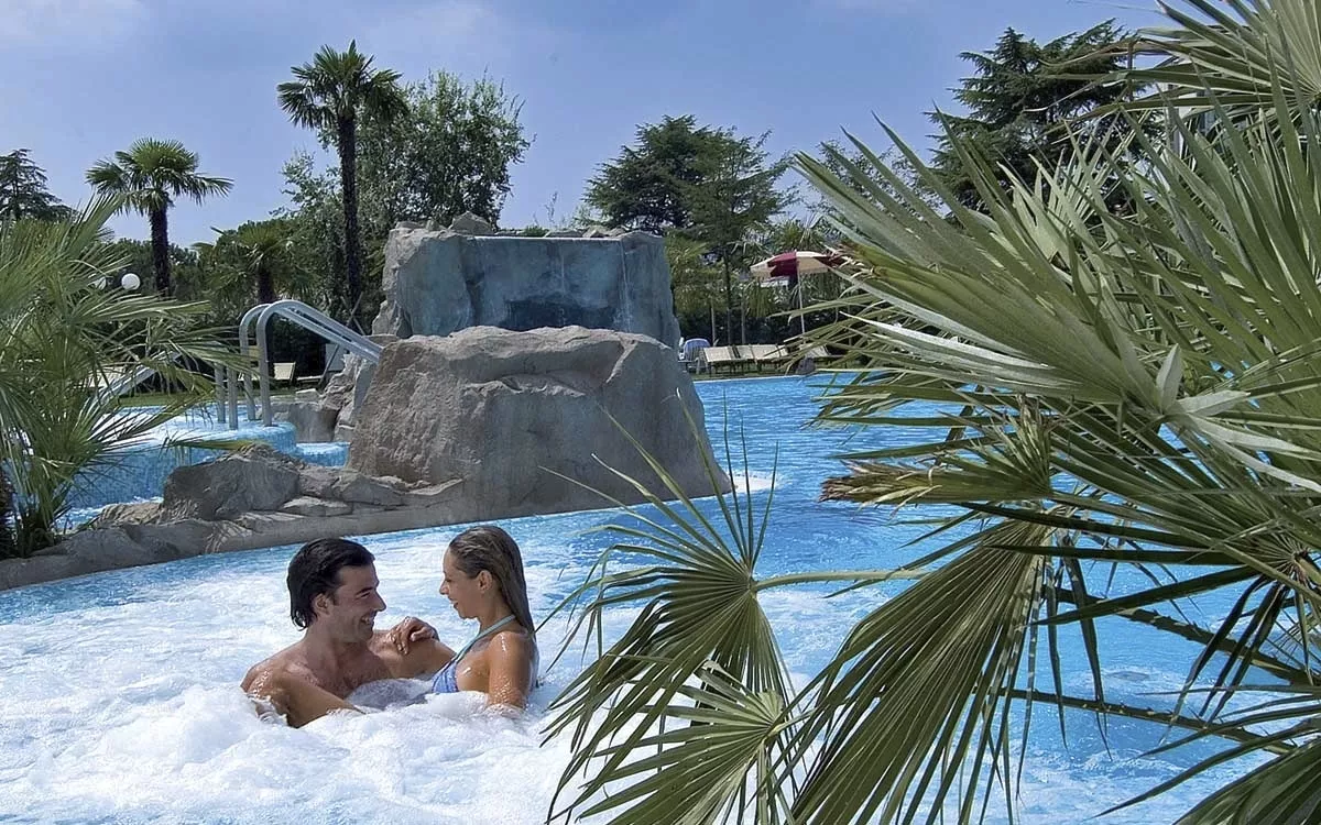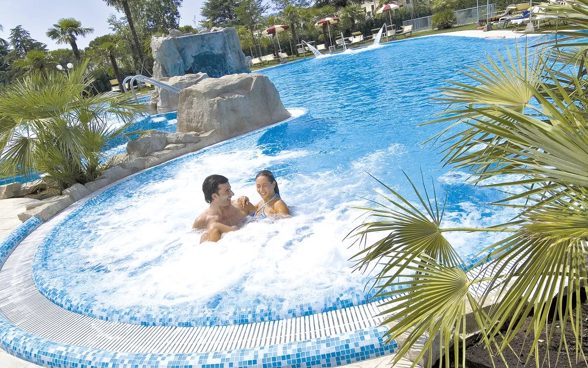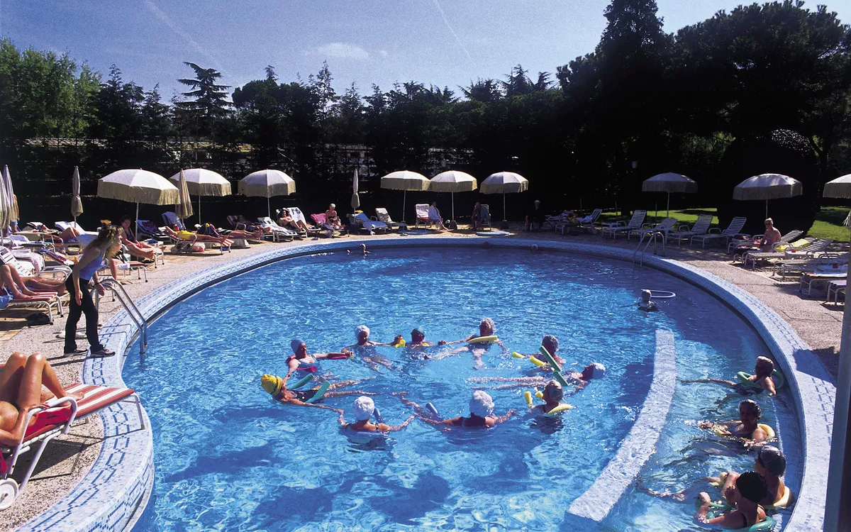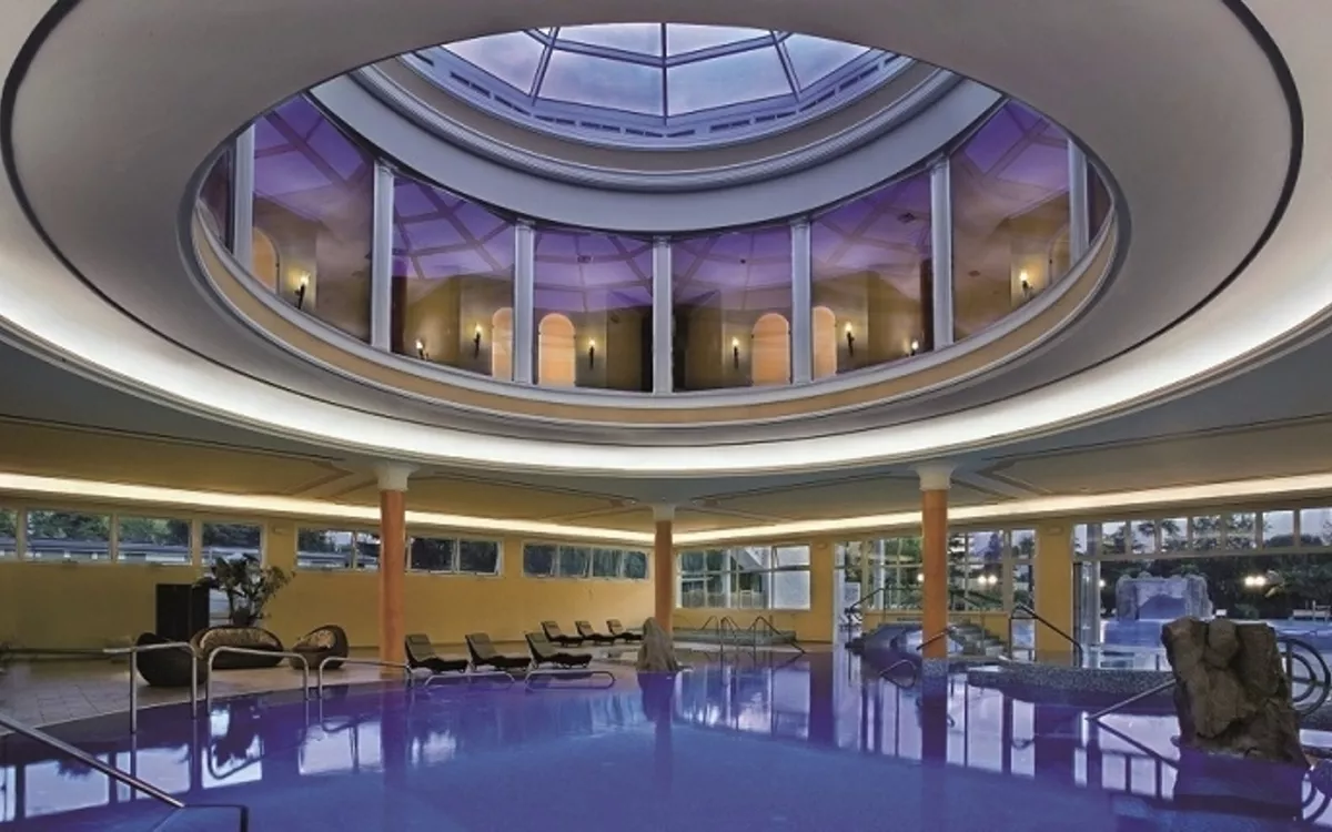 Wellnesscenter, Thermalhallenbad verbunden mit Freibad mit Unterwassermassagedüsen, Kneippanlage, Grotte mit Wasserfall und Schwitzgrotte. Gegen Gebühr: Salzgrotte, Solarium, Kosmetikbehandlungen, Inhalationen, Lymphdrainage. Romagnolisches Bad: langsames Erwärmen und wieder Abkühlen des Körpers. Dazwischen anregende Bürstenmassage (Dauer 2 Stunden). Leihgebühr: Bademantel und Badetuch (ohne Kur, ca. 15,- €).