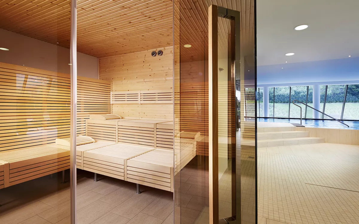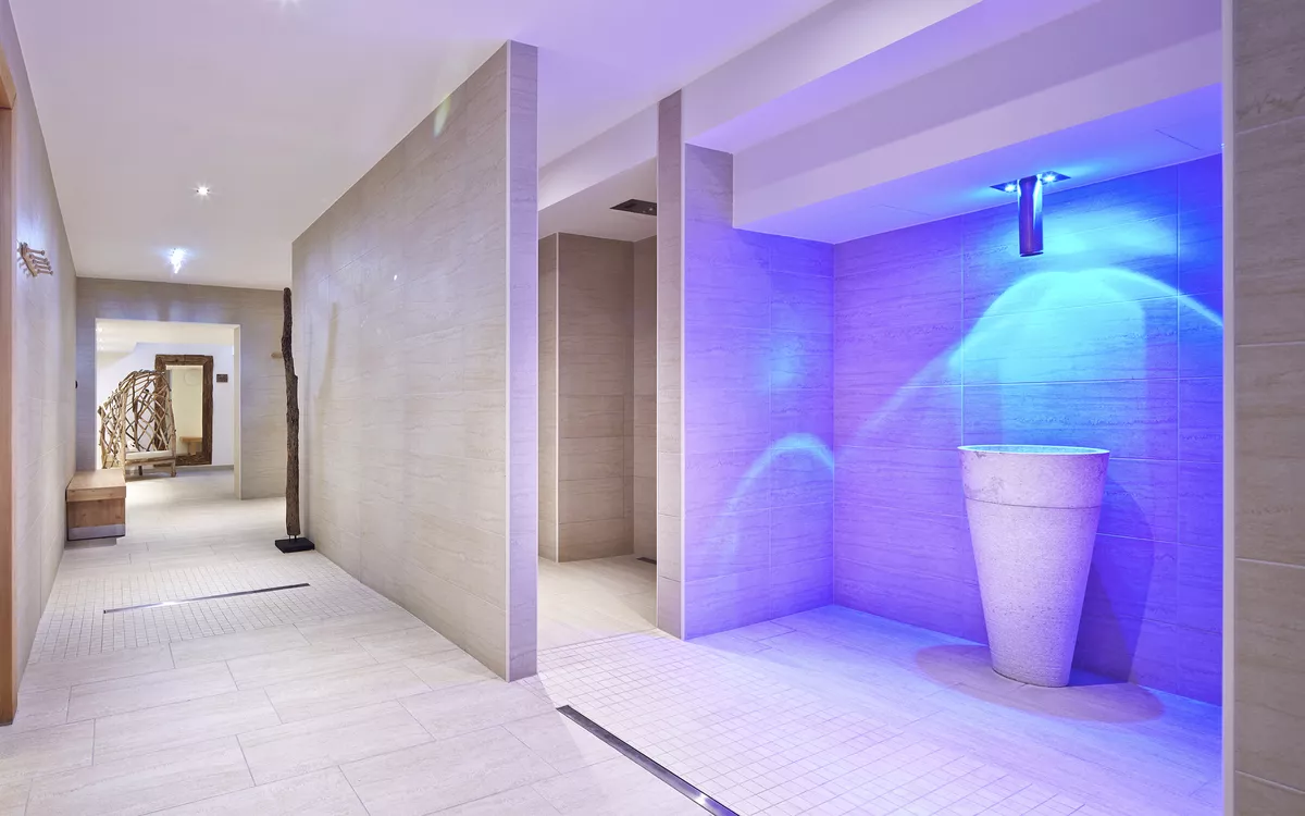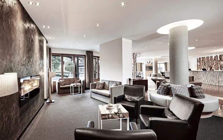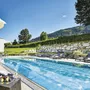 Wellness-Bereich ALPEN.VEDA.SPA mit Panorama-Hallenbad, Whirlpool, Außenpool mit Liegewiese und Bergblick, 6 Saunen, 4 Ruheräume. Spa-Tasche mit Bademantel, Badetuch und Bade-Slippern (gegen Kaution).