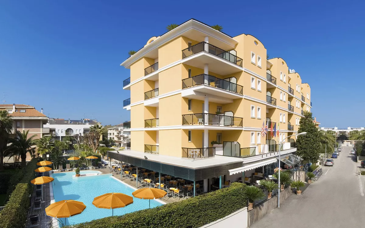 Das Hotel liegt im Ortsteil Porto d´Ascoli (Geschäfte und Einkaufsmöglichkeiten), ca. 150 m vom Strand entfernt. Zum Zentrum von San Benedetto ca. 3 km (Busverbindung).