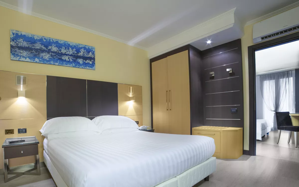 Wohlfühlzimmer mit eleganter Einrichtung, Badewanne oder Dusche, Föhn, Balkon, Hartboden, Minibar, Klimaanlage inkl., TV, Leih-Strandtuch gegen Gebühr (ca. 3 €), Safe.