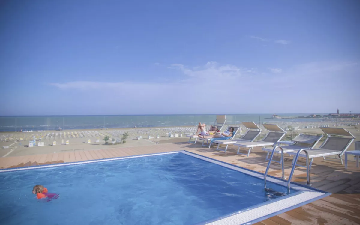 Moderne und gemütliche Zimmer, Lift, Bar, beheizter Pool mit Bar auf dem Dach, große Sonnenterrasse, Wlan, Sauna, Whirlpool, Liegen am Pool und am Strand inkl., Örtl. Kat. 3 Sterne Superior.