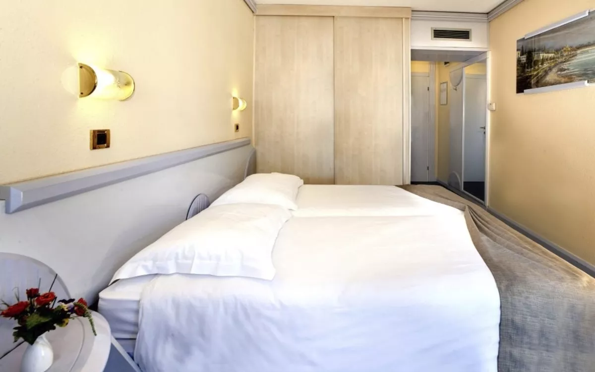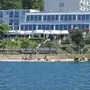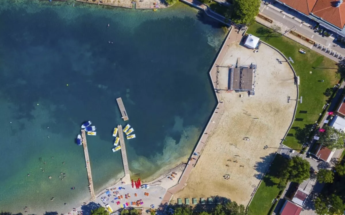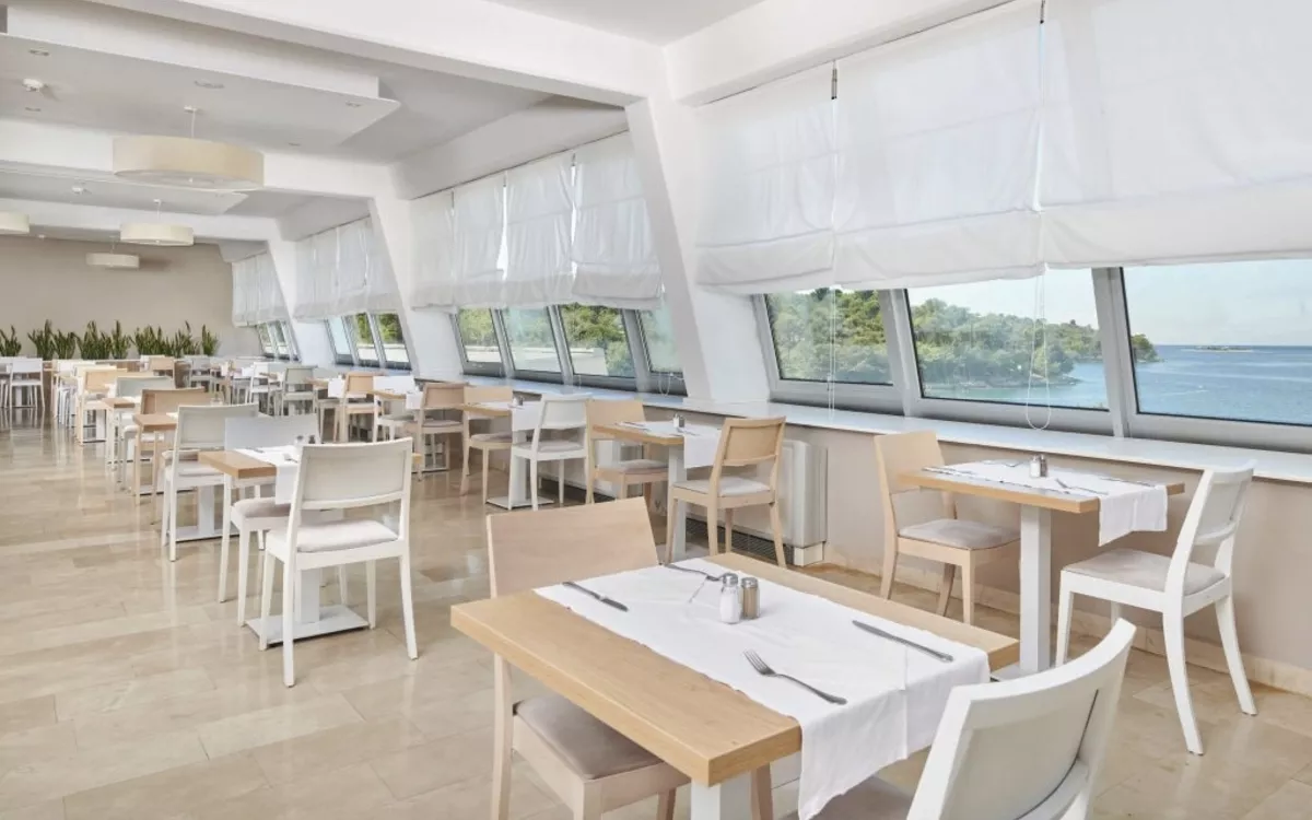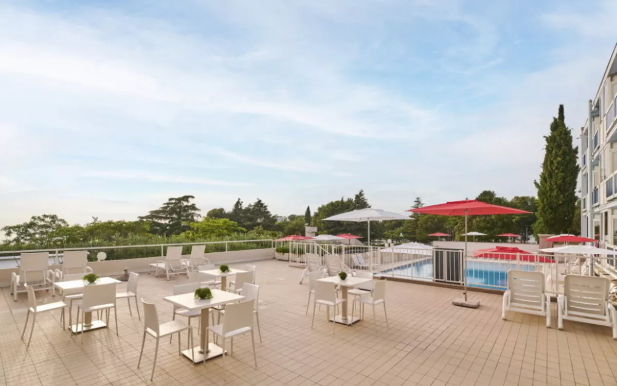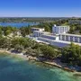 5 km südlich von Porec, in der Ferienanlage Zelena Laguna, zum Strand ca. 50 m, Liegewiese, Kiesstrand und naturbelassen felsige Abschnitte. Mini-Eisenbahn und Schiffverbindung zum Zentrum (Mai-September, gegen Gebühr). In der Anlage befinden sich Eisdielen, Cafés, Pizzeria, Konditorei, verschiedene Geschäfte, Bank. Unser Bus hält ca. 300 m vom Hotel entfernt.