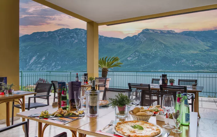 Welcome-Drink; morgens und abends reichhaltiges Buffet mit Salatbuffet, abends im Restaurant Benacus. Die Tischgetränke zum Abendessen (Wasser, Wein, Cola, Limonade) aus dem Automaten sind inklusive. Nachmittags „Tea-Time“ mit Kaffee/Tee/Gebäck inklusive.