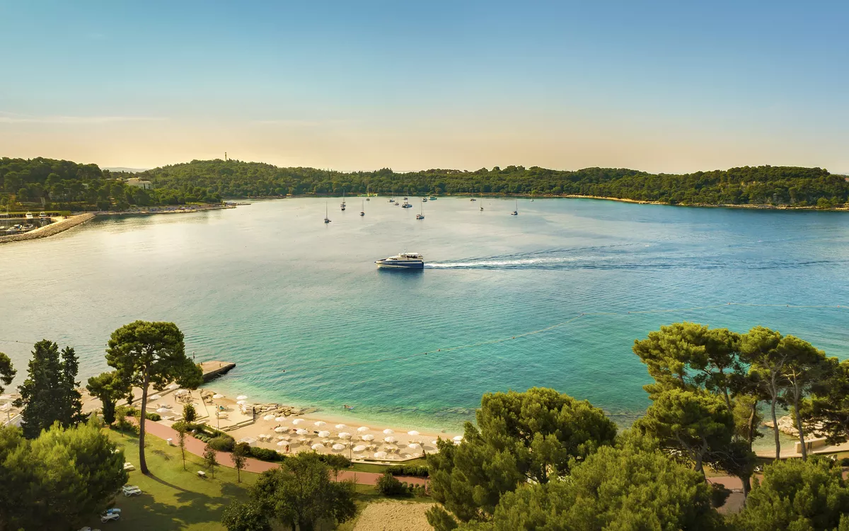 Nur fünf Minuten mit dem Schiff von Rovinj entfernt auf der Insel Sveta Katarina, mit Blick auf die Altstadt von Rovinj. In der Ruhe der Insel ohne Verkehr inmitten von mediterranem Grün, mit Naturstränden und versteckten Buchten. Ein fast stündlicher Pendelschiffsverkehr gewährt eine gute Anbindung an die Altstadt (kostenlos, von ca. 6 Uhr morgens bis Mitternacht).