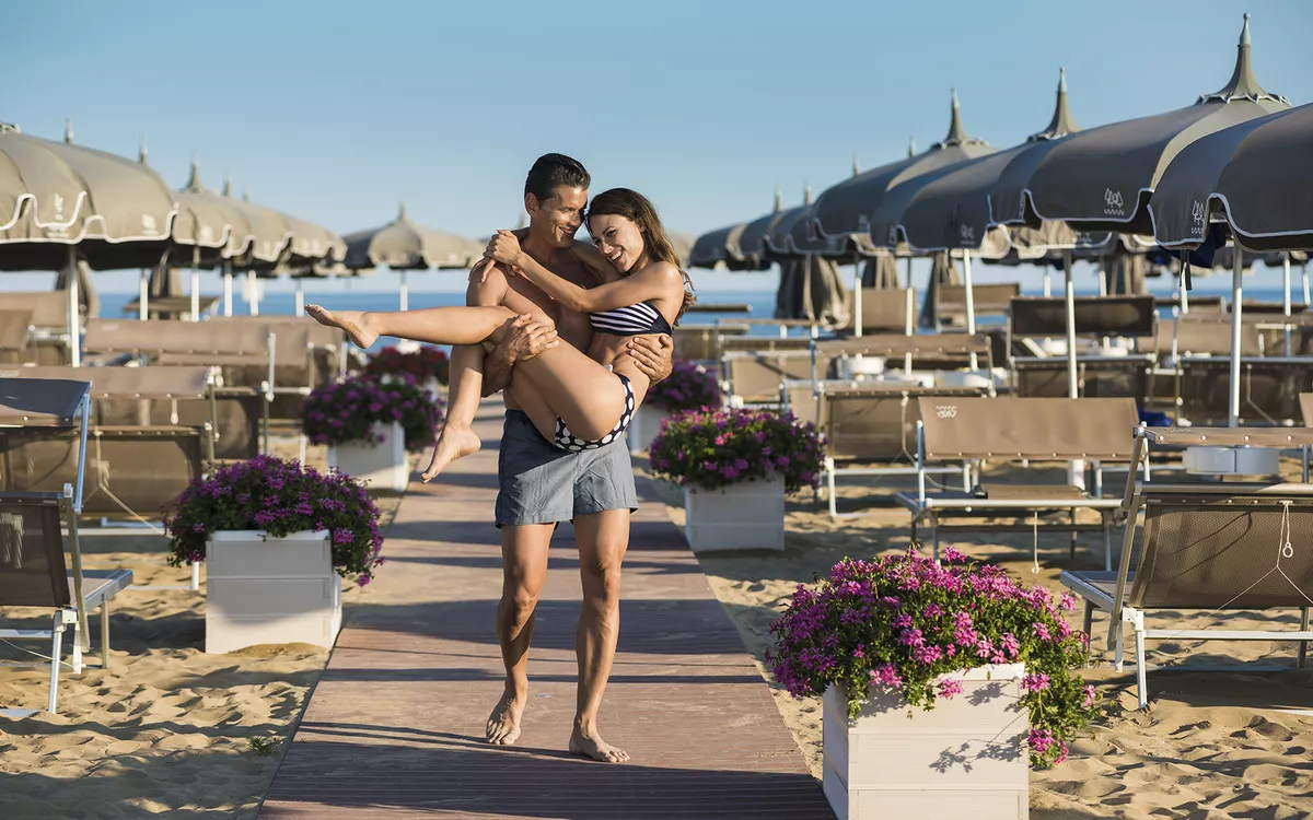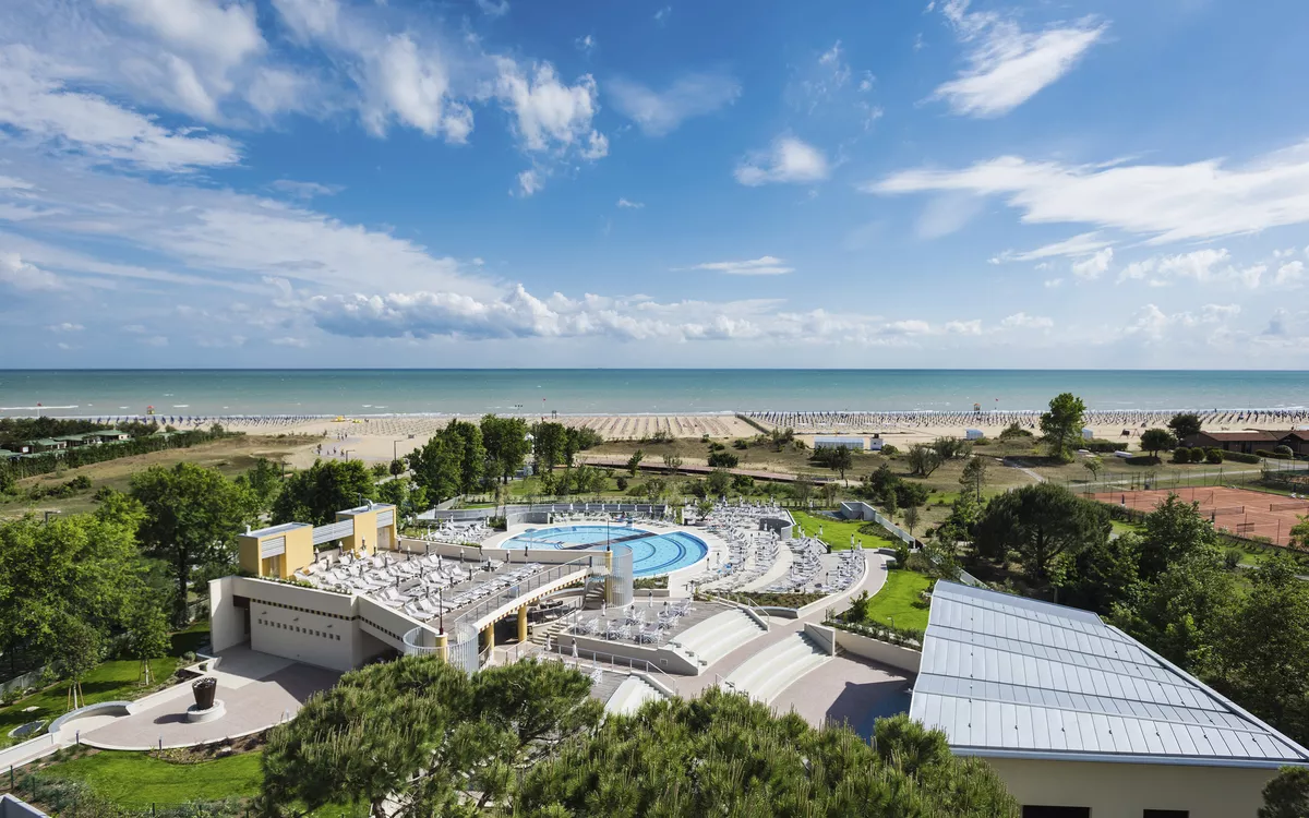 Direkt am Strand, in einer natürlichen Grünoase zwischen üppigen mediterranen Grünflächen, in der Nähe des Zentrums Bibione gelegen. Regelmäßige Busverbindung nach Bibione ca. 10 Min.