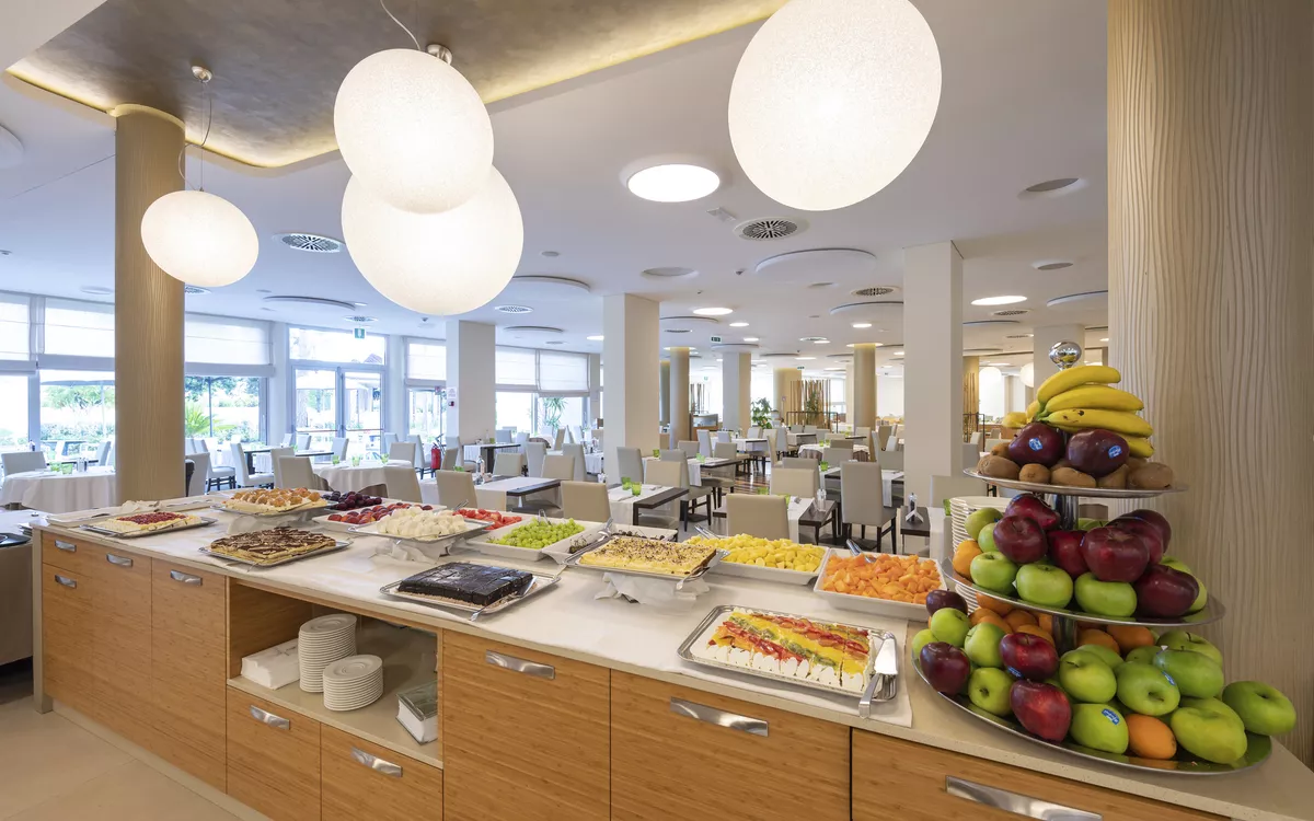 Reichhaltiges Frühstücksbuffet, abends Buffet mit internationaler Küche. Vorspeisen, warme und kalte Speisen und Nachspeisen, sehr gute Küche. A la Carte-Restaurant gegen Aufpreis.