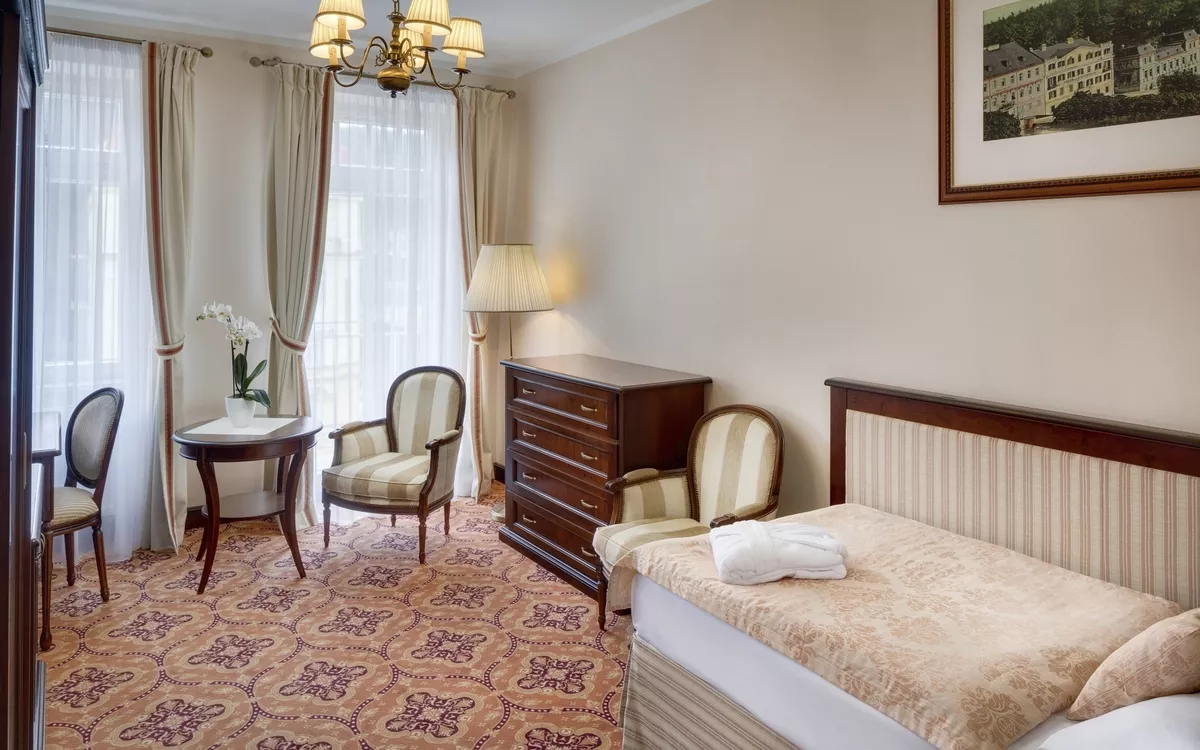 Im Nebengebäude des traditionellen Kurhotels Hvezda liegt das Hotel Imperial am Goetheplatz und beeindruckt durch die wunderschöne Architektur. In zentraler Lage zählt es zu den besten Kurhotels der Stadt. Historische Pracht vereint sich mit modernem Komfort und Service auf höchstem Niveau.